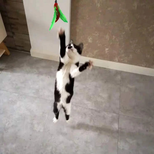 Cat Feather Toys, 2PCS Retractable Cat Wand Toy and 13PCS Replacement Teaser with Bell Refills, Interactive Cat Wand for Kitten Cat Having Fun Playing